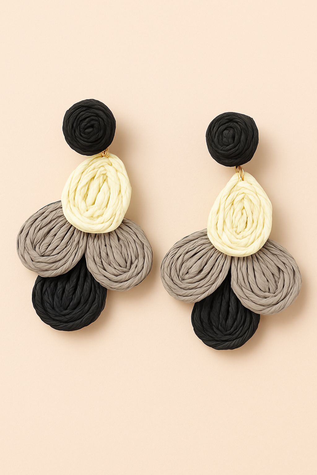 Meet Noir Nazaare β where monochrome magic meets modern art. Handcrafted in elegant tones of ivory, grey, and black, these structured paper earrings are made for the minimalist with a bold side. From sarees to streetwear, they flow effortlessly through every look with quiet drama and undeniable charm.