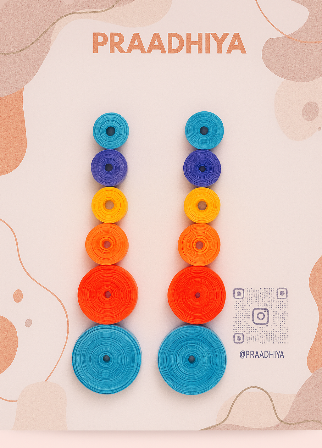 Add a burst of color to your look with these handcrafted quilled spiral earrings. Made with love and patience, each swirl is rolled from premium quilling paper, creating a lightweight yet bold accessory. The vibrant gradient—from ocean blues to fiery reds and sunshine yellows—makes these earrings perfect for both everyday wear and festive occasions.